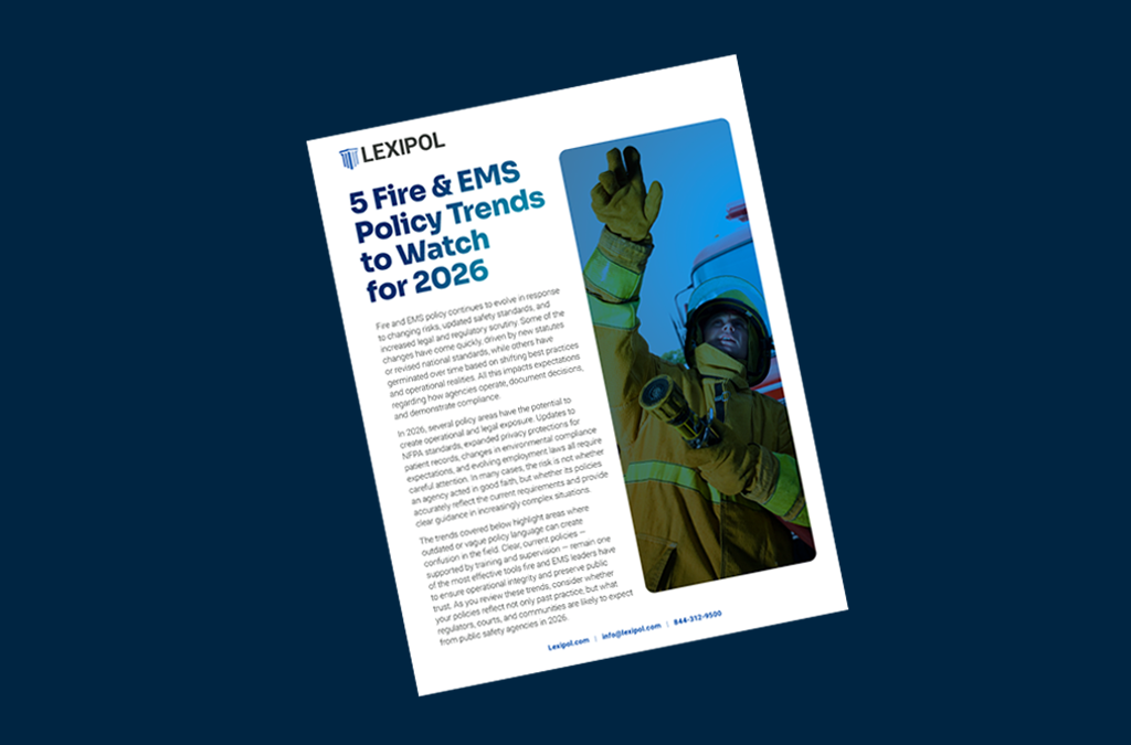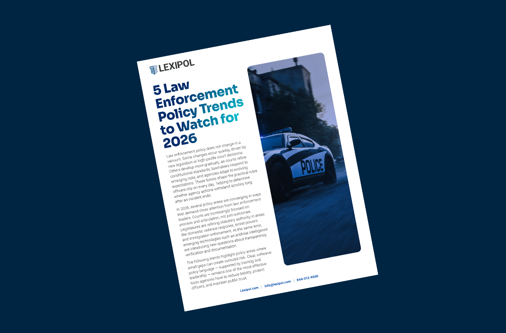 Lexipol is the only all-in-one platform for public safety leaders that combines policy, training, wellness, and reporting to reduce complexity, support confident decisions, and build a culture of readiness—today and tomorrow. Learn how we can help you focus on serving—not reacting.